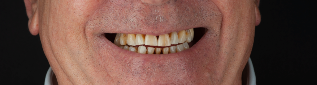 Cuando Carlos llegó a nuestra clínica presentaba dificultad para masticar y un desgaste dental causado por el bruxismo y una mala relación oclusal. Tras una valoración exhaustiva y explicarle detalladamente el plan de tratamiento, logramos devolverle la funcionalidad, la armonía facial y una sonrisa saludable. Fué un trabajo combinado de rehabilitación sobre dientes y sobre implantes.